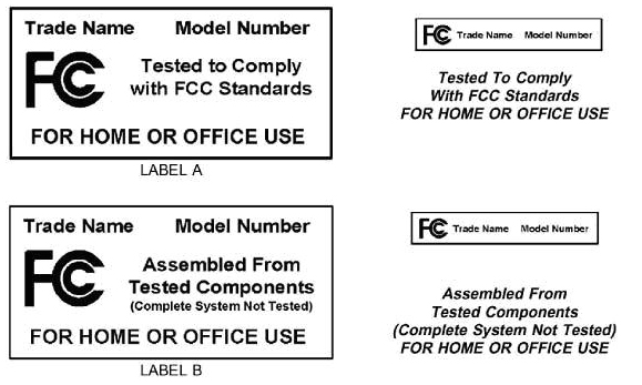 設備負責方(一般為制造商或進口商)在FCC指定的合格檢測機構對產品進行測試,以確保設備符合相關的技術標準并保留檢測報告,FCC有權要求負責方提交設備的樣品或產品的檢測數據。適用于符合性聲明的設備包括家用電腦及外設、民用廣播接收器、超再生接收器、FCC RulePart 15的其它接收器、電視機接口設備、電纜系統終端設備和Part 18 的大眾消費者使用的工業科研和醫療設備。負責方應使設備上有如下標記: