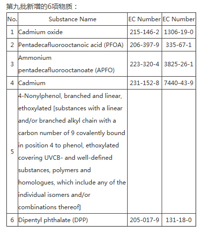 ?2013年6月20日,ECHA公(gong)布了第九批6項物(wu)質(zhi)正式進(jin)入SVHC候選列表(biao)(biao),至此(ci)SVHC候選列表(biao)(biao)增加到(dao)了144項。企(qi)業在(zai)生(sheng)產(chan)(chan)或(huo)進(jin)口這些物(wu)質(zhi)以及含有這些物(wu)質(zhi)的(de)產(chan)(chan)品時(shi)需(xu)要(yao)根據候選清單明(ming)確它的(de)潛在(zai)義務。
