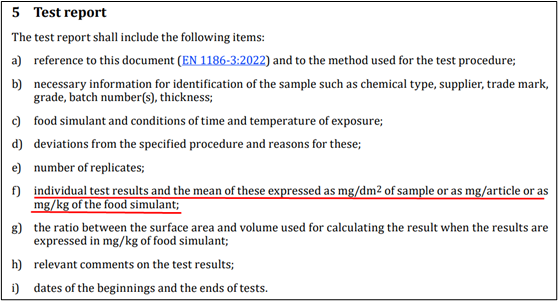根據(EU)No. 10/2011及(ji)其修(xiu)正案article 12 第2條(tiao)及(ji)article 17第4條(tiao)的規定的新條(tiao)件,為滿(man)足關于(yu)所(suo)有(you)遷移(yi)試(shi)驗類型測試(shi)結(jie)果(guo)表達方(fang)式的要求,兩項標準都調整了測試(shi)方(fang)法(fa),并增加了相應(ying)的結(jie)果(guo)表述。