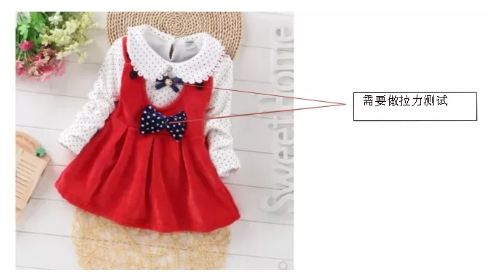 ●釋義:原文講可能被嬰幼兒(er)抓(zhua)起(qi)咬住,那在服裝等(deng)制(zhi)品(pin)內部(bu),不(bu)會被嬰幼兒(er)抓(zhua)起(qi)咬住的(de)附件,以及雖在外 部(bu)但不(bu)會(hui)被(bei)嬰(ying)幼(you)兒放入口中造成(cheng)危險(xian)的較(jiao)大附件(不(bu)能完(wan)全容(rong)入 GB 6675.2《玩具安全(quan) 第 2 部分 機械與(yu)物理性(xing)能》中小零件(jian)試驗(yan)器的可(ke)認為是較大附(fu)件(jian))或柔軟織物就不(bu)用考(kao)核(he)抗拉強力(li)。