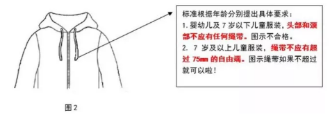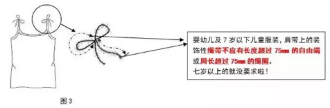 3 | 機(ji)械(xie)安全 | 標準對兒童服裝(zhuang)頭頸(jing)、肩部(bu)、腰部(bu)等不同部(bu)位繩帶作出(chu)詳細規定,要求(qiu)嬰幼兒及7 歲以(yi)下兒(er)童(tong)服裝頭頸部不允許存在任何繩帶; 標準對紡織附(fu)件(jian)(jian)也做出了規定,要求附(fu)件(jian)(jian)應具有一(yi)定的抗(kang)拉強力,且不(bu)應存在(zai)銳(rui)利尖端和(he)邊緣。 |