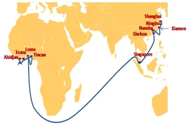 中遠去往(wang)西非途徑尼日利亞(ya)的航(hang)線(xian):FWAS