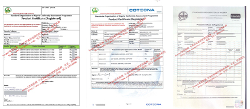 After obtaining the product certificate, apply for supervision and obtain the SC certificate before shipment. The importer submits the SC certificate to the Nigerian Bureau of Standards (SON) to apply for SONCAP CERTIFICATE for customs clearance.