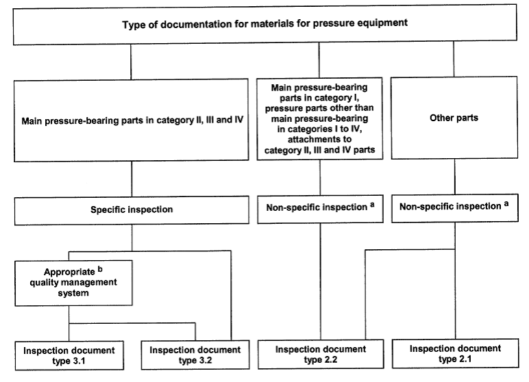 根據EN 10204:2004,承壓設備各部件材料的檢驗文件類型。
