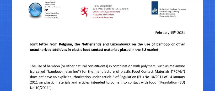 2020年(nian)8月,歐洲委(wei)員會食(shi)品接觸(chu)材料(liao)專家工作(zuo)(zuo)組(zu)澄(cheng)清(qing)了關于含有(you)竹粉或其他(ta)類似(si)成分的塑(su)料(liao)材料(liao)和制品的使(shi)用和投放(fang)市場的許(xu)可(ke)情況。明確指出(chu)(EU) NO 10/2011未許(xu)可(ke)碎竹、竹粉、玉(yu)米(mi)淀粉等類似(si)物質作(zuo)(zuo)為添(tian)加劑在塑(su)料(liao)材料(liao)及制品中使(shi)用。