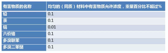 該法規主要測量的有害(hai)物質(zhi)名稱及含量分別是: