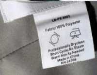 根據FTC的(de)《護理標簽(qian)規則》,護理信息必須是由英文(wen)書寫(xie)的(de)護理說明或ASTM D5489-96c標準中的護理(li)符(fu)號。無論是(shi)由(you)文字還(huan)是(shi)符(fu)號組成(cheng),護理(li)說(shuo)明都應至少包(bao)含四個洗(xi)滌說(shuo)明符(fu)號,按洗(xi)滌、漂白、干(gan)燥和熨燙(tang)順序(xu)排(pai)列。干(gan)洗(xi)/專業紡織品護理(li)說(shuo)明(ming)使用(yong)一(yi)個符號。額外的符號或(huo)文字可以用(yong)來闡明(ming)護理(li)說(shuo)明(ming)。