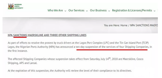 尼(ni)日利亞港口部(bu)門公告(gao):制裁!禁(jin)停10天(tian)!!