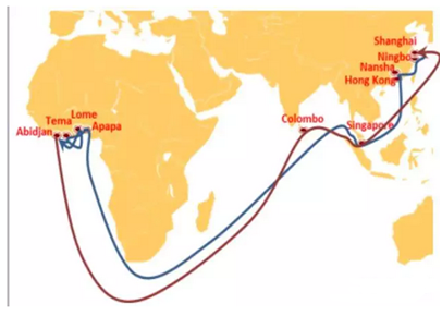 中遠去往(wang)西非途(tu)徑尼日利亞的航線:WAX2