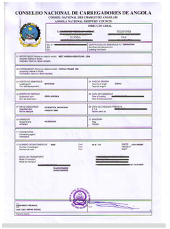根據安哥拉的法規,每票B/L運至安哥拉(Angola)的貨物,都必須在裝貨港提供C.N.C.A.出具的船運證書。安哥拉(Angola)CNCA船運證書是CONSELHO NACIONAL DE CARREGADORES DE ANGOLA的縮寫。